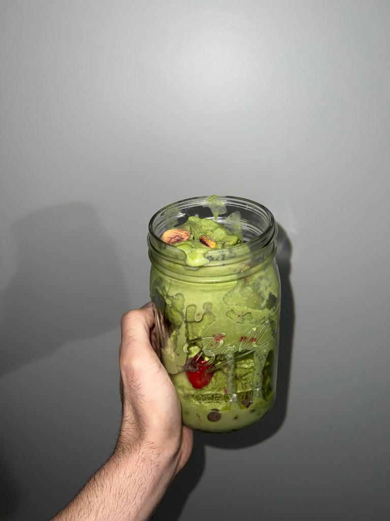 Next morning later, that deep jade base spun into something cool, creamy, and green.